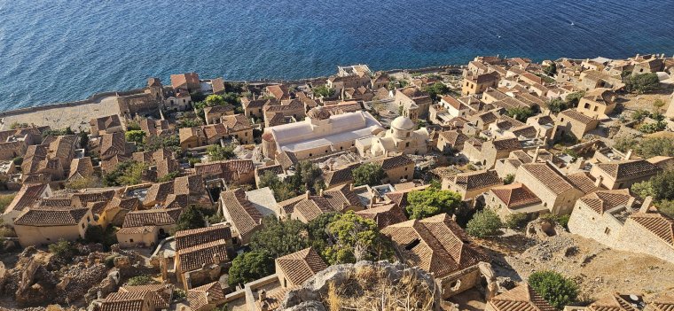 Team Kerensa left the next morning, headed to Monemvasia. We were lucky and got a great free town Quay spot alongside. After a lazy afternoon waiting for the heat of the day to cool, we had a meal and walked up to lower old town. For protection, this was built at the base of a large cliff and generally can't be seen from the mainland. The original town was built at the top and is now ruins. The lower town is being restored and is beautiful, albeit a bit touristy. After a couple of hours we walked back to the boat planning a trip up to the upper town early in the morning. This proved to be a great decision, the church there is the only restored building, but it was easy to sense the city that once existed and explore what is left of the houses, including a larger one presumably belonging to the leader/ruler.