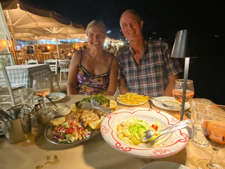 As the heat built we went back down to the lower town for a lovely brunch and then back to the boat. By this time Ant and Ros had followed us down and were anchored in the bay. We met up again for dinner with another Aussie couple Malcolm and Kate, sailing on their lovely Swan 48 Grace of Sydney.